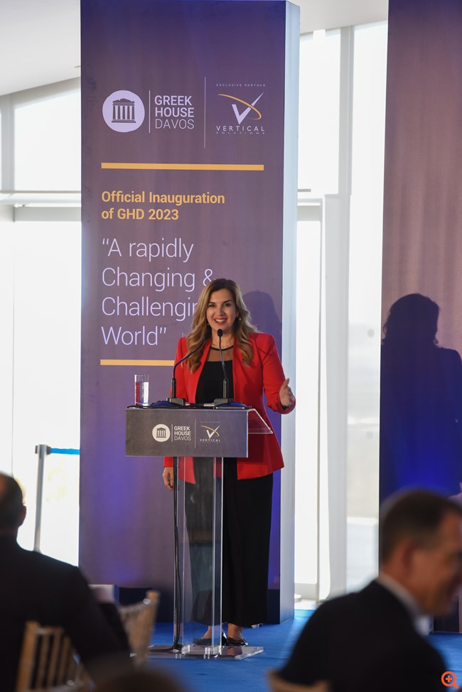 Στην εισαγωγική τους ομιλία η ιδρύτρια και πρόεδρος του Greek House Davos κ. Ειρήνη Βανταράκη και ο CEO της Vertical Solutions, αποκλειστικού συνεργάτη του Greek House Davos Εδουάρδος Καρρέρ καλωσορίζοντας τους προσκεκλημένους αναφέρθηκαν στο όραμα του Greek House Davos που είναι να συστηματοποιηθεί η διεθνής αλληλεπίδραση με γνώμονα τον πολυσυμμετοχικό διάλογο ανάμεσα σε επιχειρηματίες, επενδυτές, διαμορφωτές πολιτικής και κυβερνητικούς αξιωματούχους, προσφέροντας το πλαίσιο και τον χώρο όπου θα μπορούν να συναντηθούν για να συζητήσουν, να διαπραγματευτούν και να αναζητήσουν τρόπους συνεργασίας και βιώσιμες λύσεις στις κοινές μας προκλήσεις.